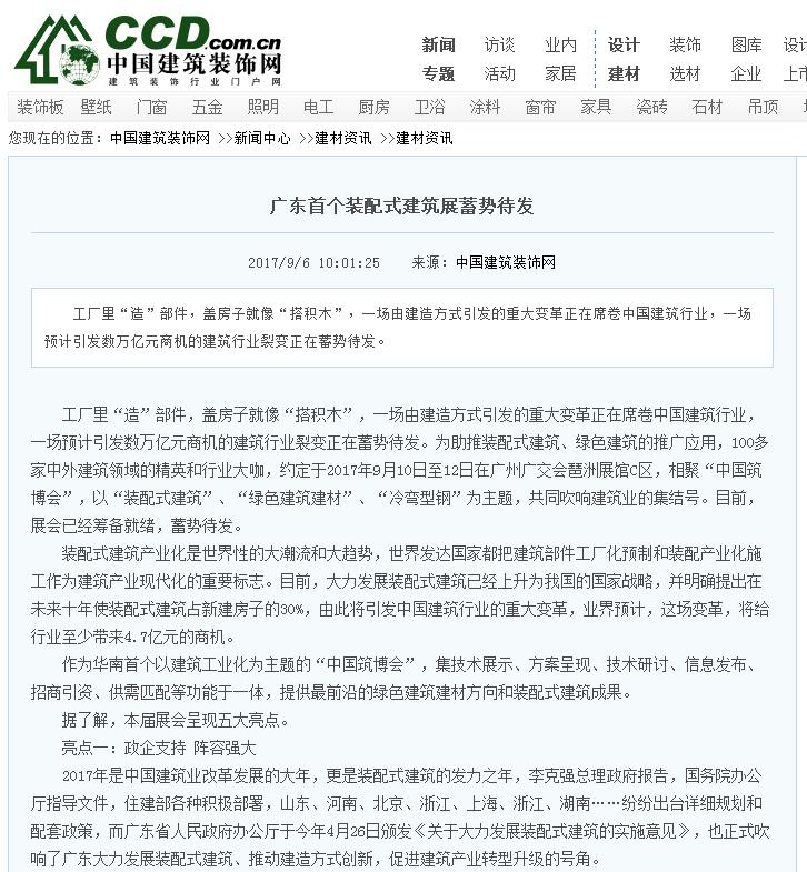 中國鋼結構資訊網發布有關2017中國筑博會·廣州開幕式的報道 (2017-10-30)