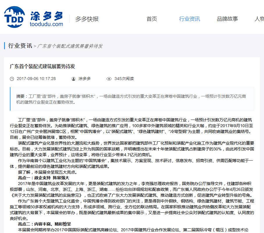 招商寶網發布有關2017中國筑博會·廣州開幕式的報道 (2017-10-30)