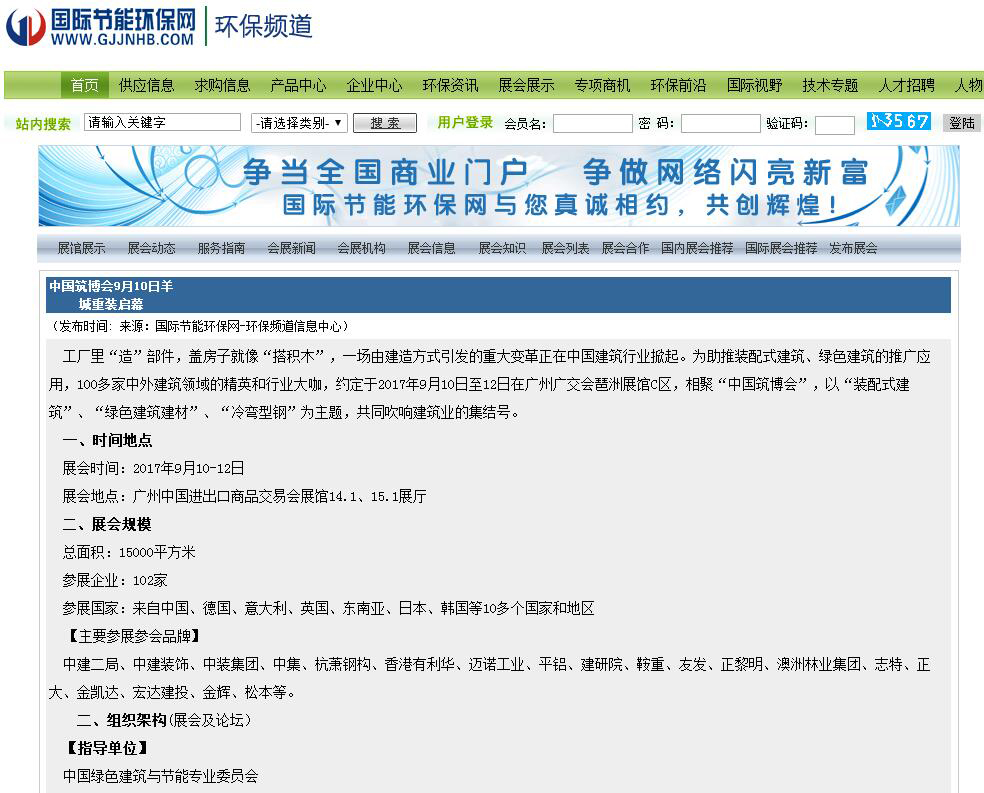 中國建筑工程信息資訊網發布有關2017中國筑博會·廣州開幕式的報道 (2017-10-30)