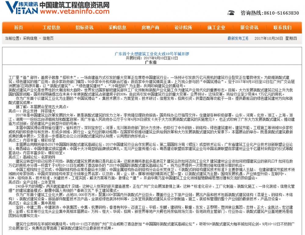 中國招標(biāo)采購導(dǎo)航網(wǎng)發(fā)布有關(guān)2017中國筑博會·廣州開幕式的報道 (2017-10-30)