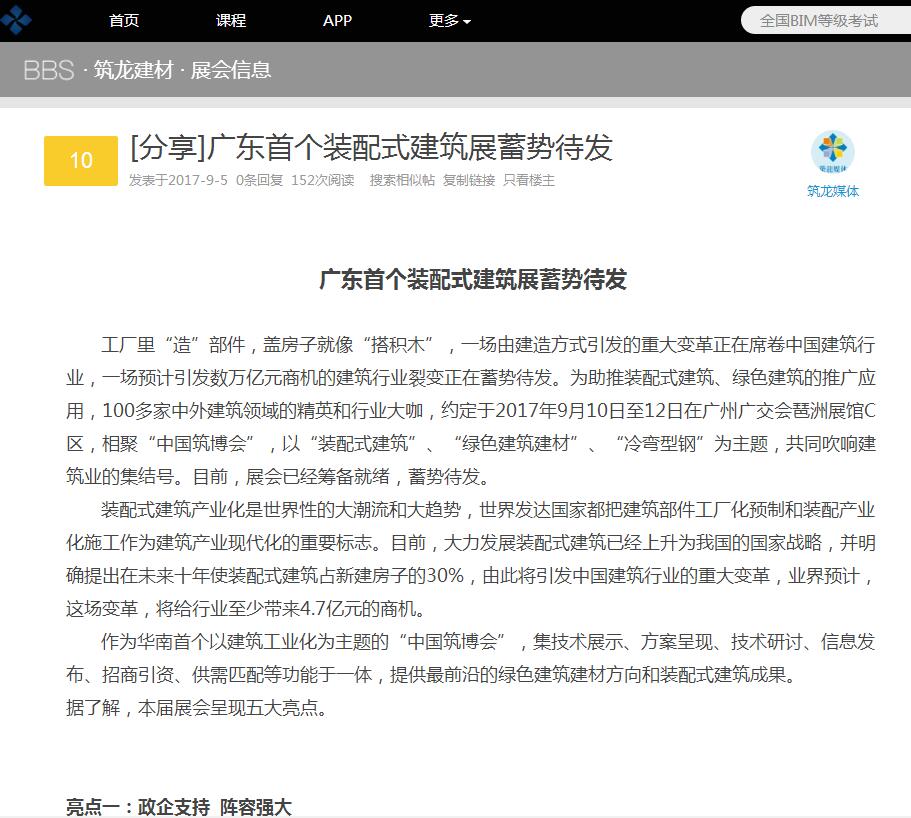 綠建之窗網發布有關2017中國筑博會·廣州開幕式的報道 (2017-10-30)