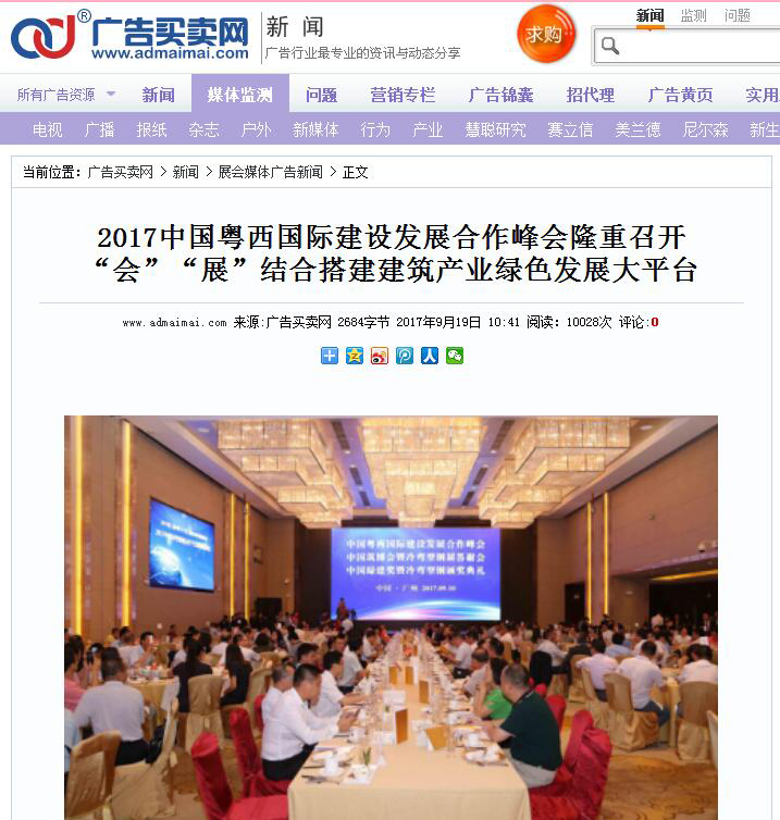 中國門窗幕墻資訊網發布有關2017中國粵西國際建設發展合作峰會的報道 (2017-10-31)