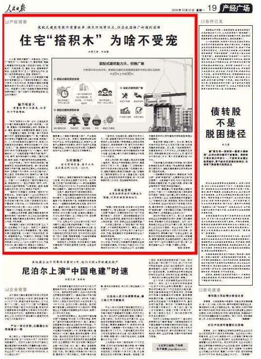 傳統建筑工地給人的印象往往是“塵土飛揚、垃圾滿地、叮叮當當”。相較之下,裝配式建筑的現場作業則干凈安靜得多。“施工裝配機械化程度很高,大大減少了現場的和泥、抹灰、砌墻等濕作業。”劉瑄估計,傳統施工的建筑垃圾約為每立方米50—60公斤,而裝配式能將其減少80%以上。“此外,還能節水60%、節省木材80%、減少能耗70%,噪音也大為降低。”從經濟發展全局看,發展裝配式建筑也有重要意義。“裝配式建筑量大面廣、產業鏈條長、產業分支眾多。發展它,能夠帶動部品部件生產企業、專用設備制造企業、物流產業、信息產業等新的市場需求,有利于促進產業再造和增加就業,并帶動地方經濟發展。”住建部科技與產業化發展中心副主任文林峰表示。